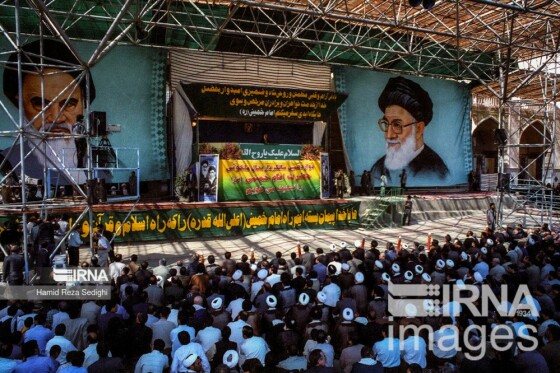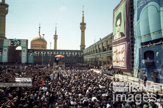 حضرت آیت الله خامنه ای؛ رهبر معظم انقلاب پس از رحلت امام خمینی (ره) در سال ۱۳۶۸ هر ساله در مراسم سالگرد ایشان شرکت و برای عزاداران حاضر در حرم سخنرانی کردند.