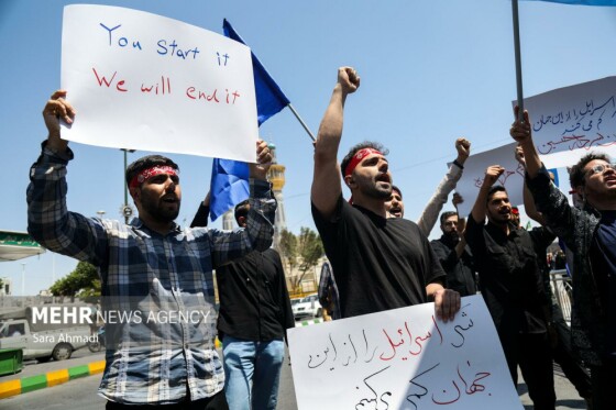 در پی حمله رژیم صهیونیستی به مناطق مختلف ایران در سحرگاه جمعه ۲۳ خرداد، دانشجویان و مردم مشهد با برگزاری تجمعی در فلکه آب، انزجار خود را از این اقدام ابراز کردند.