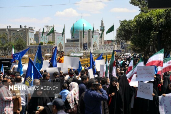 گزارش تصویری/ تجمع دانشجویان و مردم مشهد در محکومیت حمله رژیم صهیونیستی
