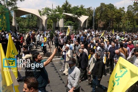 مراسم عبادی - سیاسی نماز جمعه (۵ اردیبهشت ۱۴۰۴) به امامت آیت الله «سید احمد خاتمی» امام جمعه موقت در دانشگاه تهران برگزار شد. مردم تهران بعد از پایان نماز عبادی سیاسی جمعه در محکومیت جنایت پلید رژیم غاصب صهیونیستی و شهادت جمعی از فرماندهان سپاه و دانشمندان هستهای و شهروندان ایرانی، راهپیمای کردند.