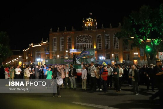 جمعی از مردم تبریز در حمایت از عملیات غرورآفرین وعده صادق ۳ همزمان با فرودموشکهای ایرانی در خاک سرزمینهای اشغالی تجمع کرده و شعارهای حمایتی از نیروهای نظامی کشور سر دادند