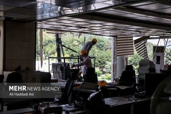 گزارش تصویری/ بازدید اصحاب رسانه ازساختمان شیشهای صداوسیما پس ازحمله رژیم صهیونیستی