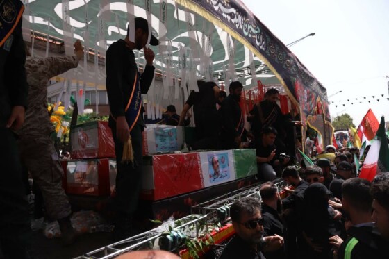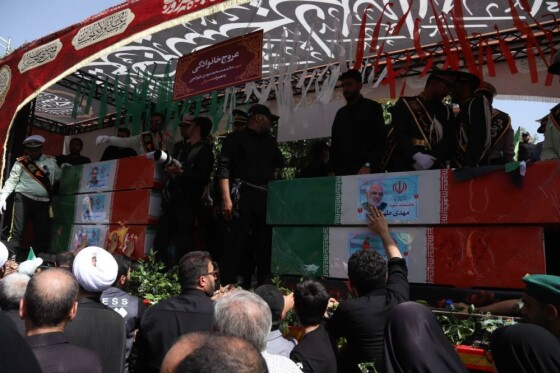 مراسم تشییع پیکر شهدای حمله تروریستی رژیم صهیونیستی صبح شنبه (۷ تیر ۱۴۰۴) با حضور مسئولان لشکری، کشوری و اقشار مختلف مردم از میدان انقلاب اسلامی به سمت میدان آزادی تهران برگزار شد.