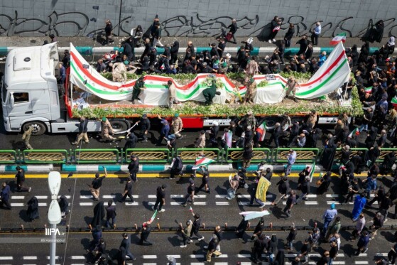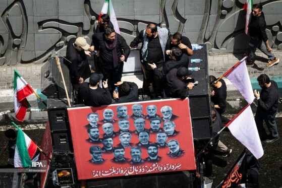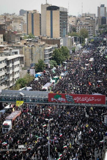مراسم تشییع پیکر شهدای حمله تروریستی رژیم صهیونیستی صبح شنبه (۷ تیر ۱۴۰۴) با حضور مسئولان لشکری، کشوری و اقشار مختلف مردم از میدان انقلاب اسلامی به سمت میدان آزادی تهران برگزار شد.