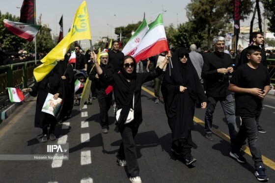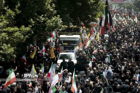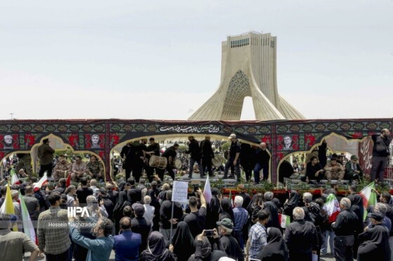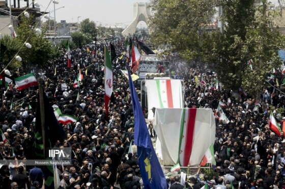مراسم تشییع پیکر شهدای حمله تروریستی رژیم صهیونیستی صبح شنبه (۷ تیر ۱۴۰۴) با حضور مسئولان لشکری، کشوری و اقشار مختلف مردم از میدان انقلاب اسلامی به سمت میدان آزادی تهران برگزار شد.