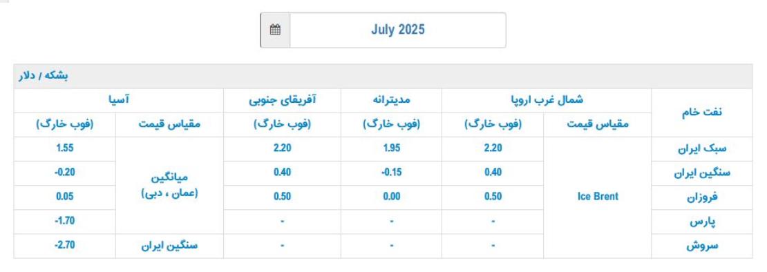 گفتنی است مدیریت امور بینالملل شرکت ملی نفت ایران بهصورت ماهانه قیمت فروش انواع نفت خام کشور را منتشر میکند.