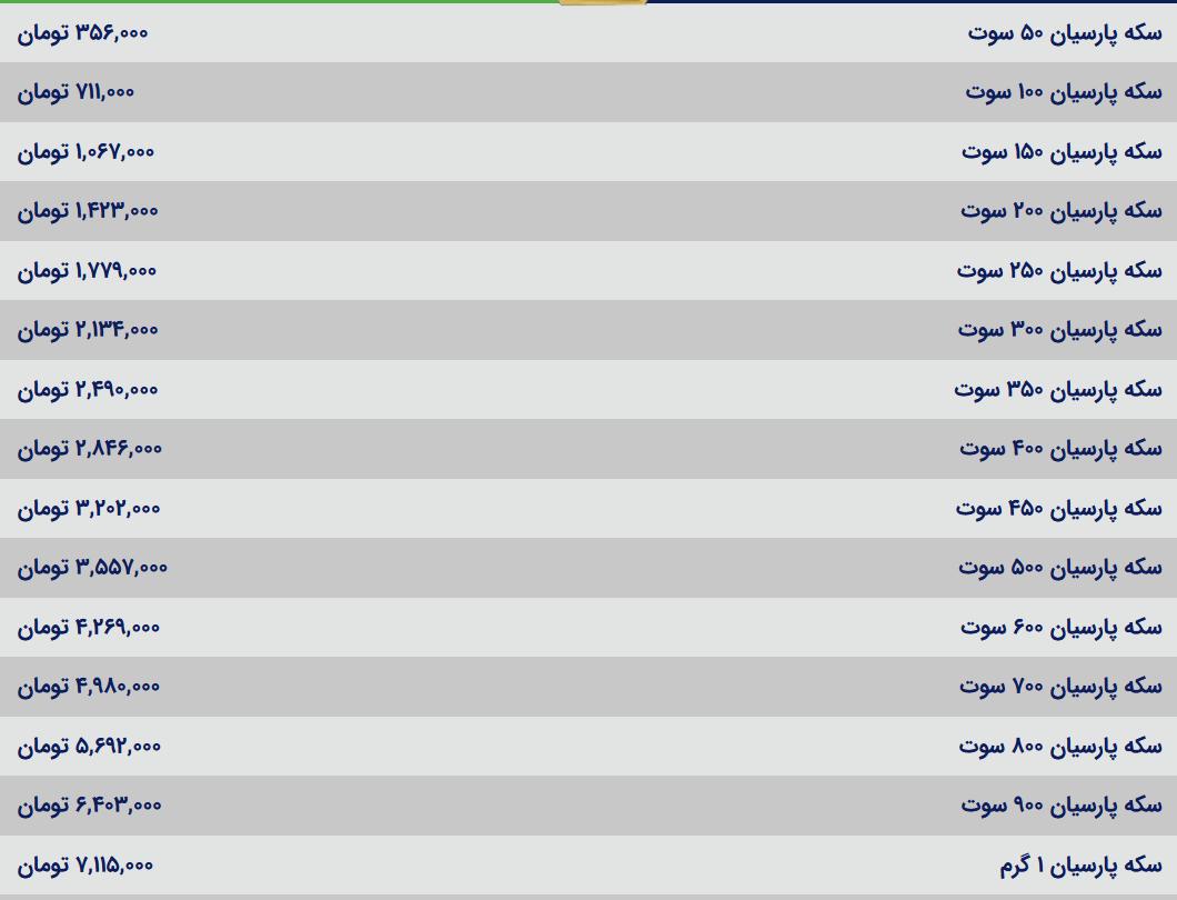 قیمت سکه پارسیان، امروز ۲۴ تیر ۱۴۰۴