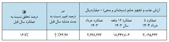 ارزش جذب و تجهیز منابع به تفکیک سرمایه­‌ای و بدهی از ابتدای سال تا پایان خرداد ماه ۱۴۰۴ حدود ۳۰۶.۵ همت بوده‌ است. این در حالی است که ارزش جذب و تجهیــز منابع در دوره مشابه سال ۱۴۰۳ حدود ۲۳۲.۸ همت بود.