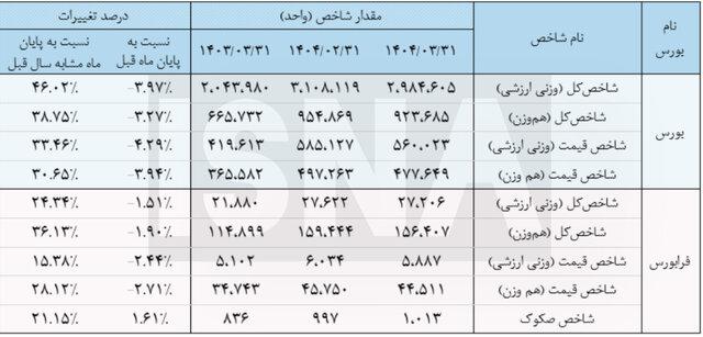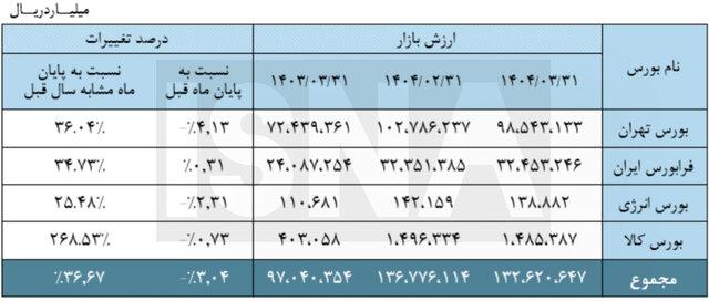 بر اساس گزارش ماهانه بازار سرمایه، در خرداد ماه ۱۴۰۴ ارزش بازار اوراق بهادار با سه درصد کاهش نسبت به انتهای ماه قبل این گزارش (اردیبهشت ماه) به حدود ۱۳ هزار و ۲۶۲ همت در پایان خردادماه رسید و شاخص‌کل بورس اوراق بهادار نیز چهار درصد و شاخص‌کل فرابورس ایران ۱.۵ درصد کاهش داشت.