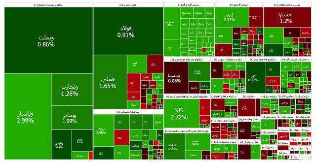 فملی، فارس و نوری بیشترین تاثیر مثبت را بر شاخص بورس داشتند. از نمادهای پرتراکنش نیز میتوان به وبملت، خساپا و فولاد اشاره کرد.