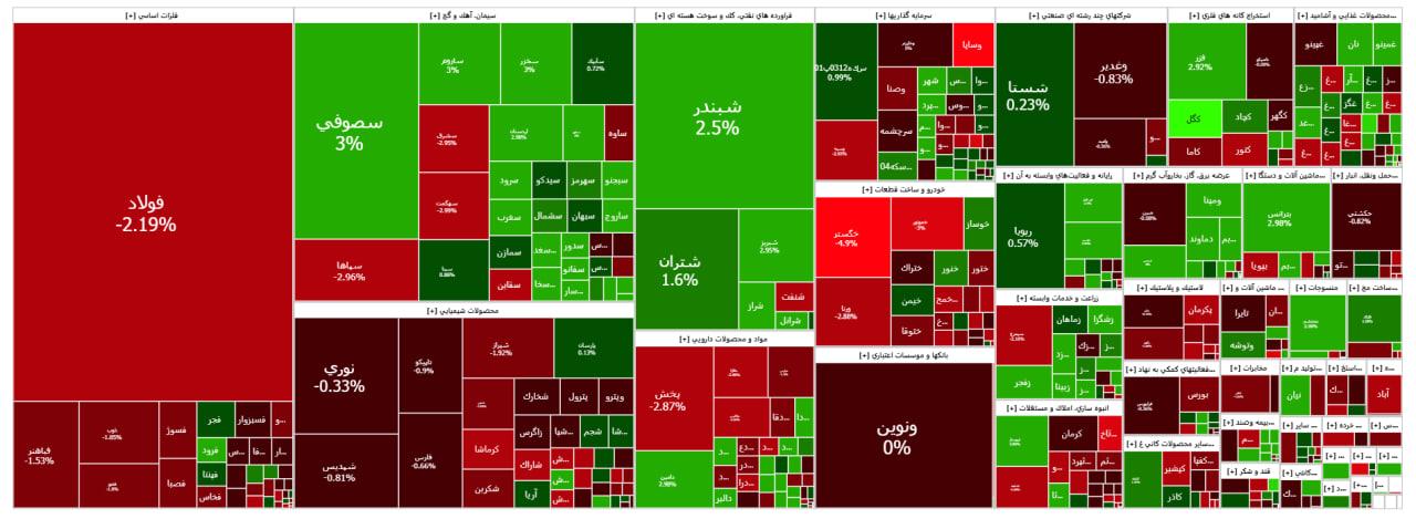 نماد فولاد در معاملات امروز در افت شاخص مؤثر بود. ارزش کل بورس تهران در کانال ۸.۸ هزار همت باقی ماند. ارزش معاملات امروز به ۴۰ همت رسید که ۸.۵ همت ارزش معاملات خُرد بود. ۵۱۱ میلیارد تومان پول حقیقیها از بازار سهام، ۲۰۰ میلیارد تومان از صندوقهای سهامی و ۱۰۰ میلیارد تومان از صندوقهای درآمد ثابت خارج شد.