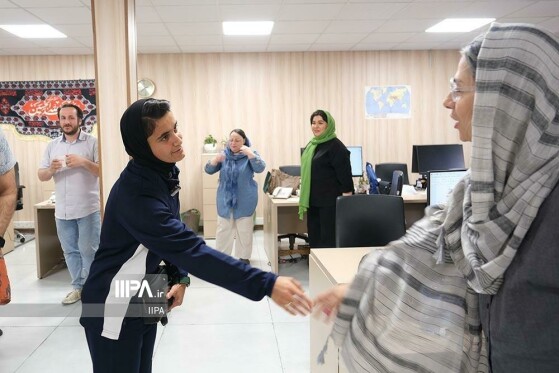 نگین زندی بازیکن تیم ملی فوتبال بانوان ایران چهارشنبه یکم مرداد با حضور در موسسه فرهنگی مطبوعاتی ایران از تحریریه ایران و ایران ورزشی بازدیدکرد.