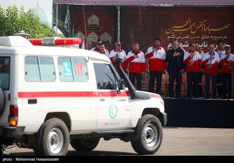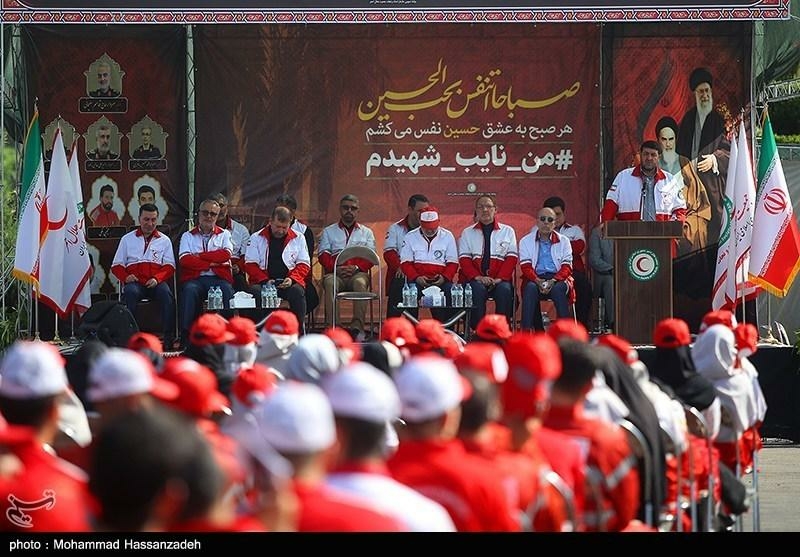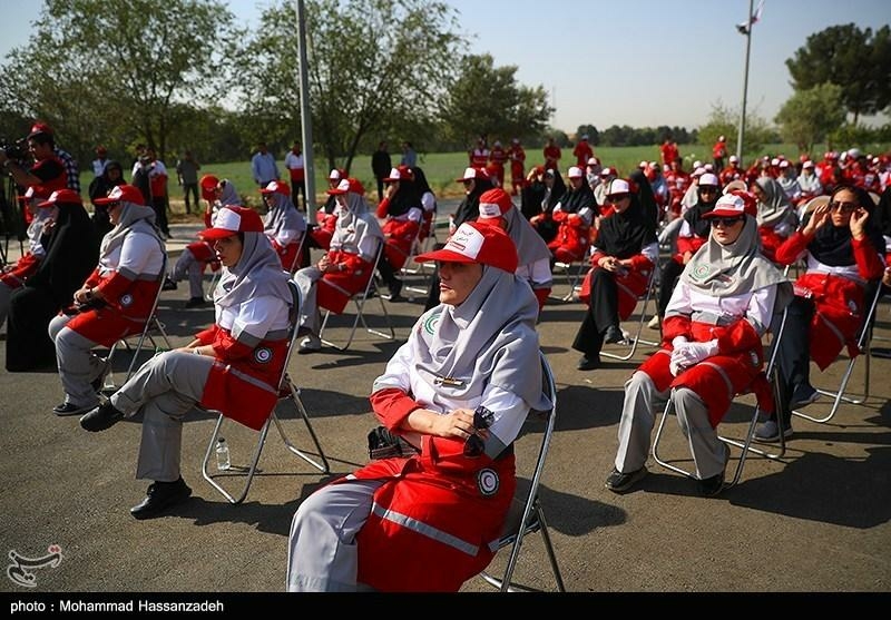 گزارش تصویری/ رزمایش نیروهای جمعیت هلال احمر اعزامی به مراسم اربعین حسینی