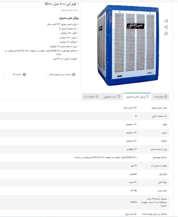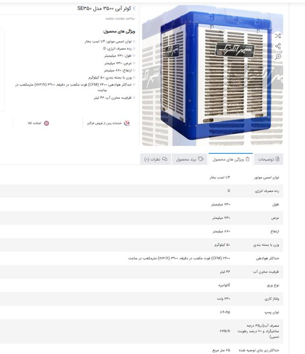 شرکت سپهر الکتریک نیز برای کولرها با ظرفیت 3500 تا 7000 و در شرایط مشابه (دمای 35 درجه و رطوبت 20 درصد) مصرف 22 تا 42 لیتر در ساعت را گزارش میدهد.