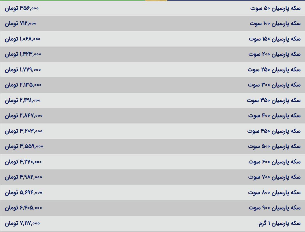 قیمت سکه پارسیان، امروز ۷ مرداد ۱۴۰۴