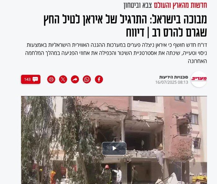 ایران انلاین: وبسایت معاریو در واکنش به گزارش اخیر وال استریت ژورنال در رابطه با پیدا کردن نقاط ضعف سامانههای پدافندی رژیم صهیونیستی توسط ایران طی چنگ ۱۲ روزه نوشت: