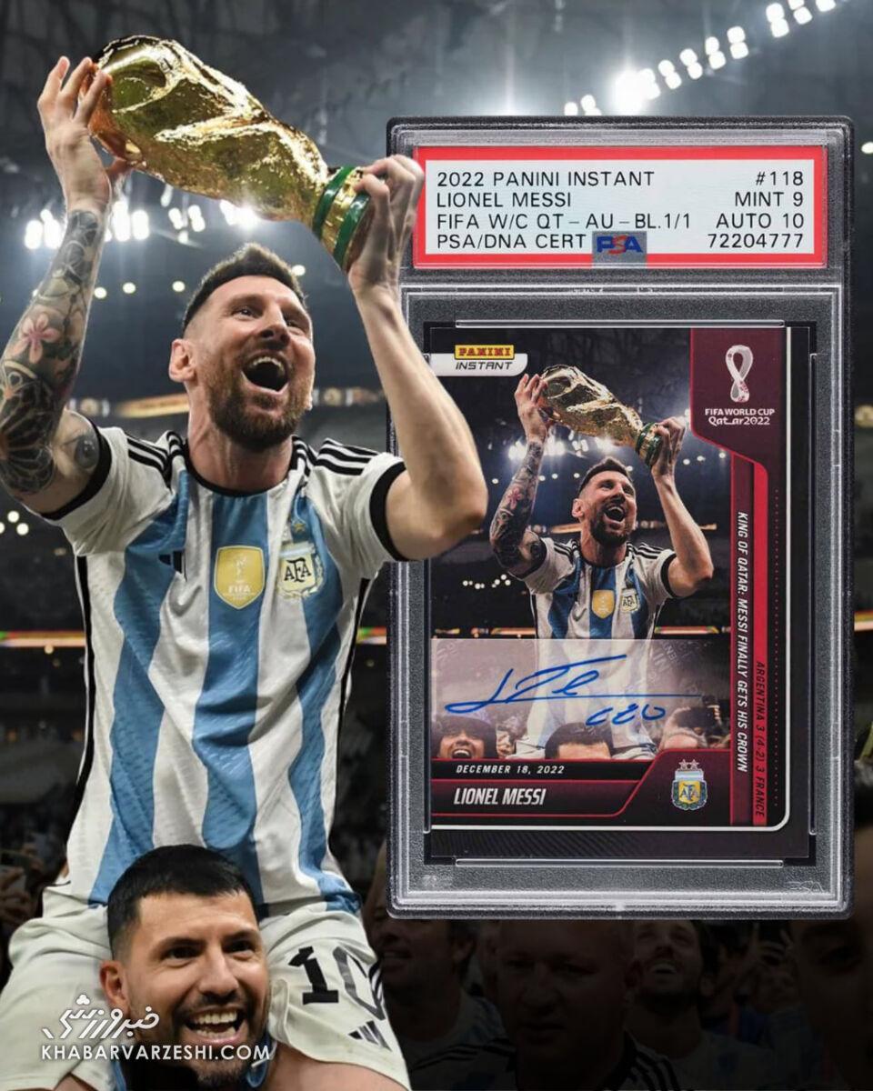 به گزارش خبر ورزشی، قهرمانی مسی در جام جهانی، نقطه‌ی اوج یکی از بزرگ‌ترین دوران‌های ورزشی در تاریخ بود. جشن احساسی او در حالی‌که جام طلایی را بالای سر گرفته بود، بلافاصله به تصویری نمادین تبدیل شد؛ نمادی از نه‌ تنها یک قهرمانی، بلکه تحقق بزرگ‌ترین آرزوی او بود. این تصویر روی یک کارت کلکسیونی چاپ شد که اخیرا با قیمتی بسیار بالا به فروش رسیده است.