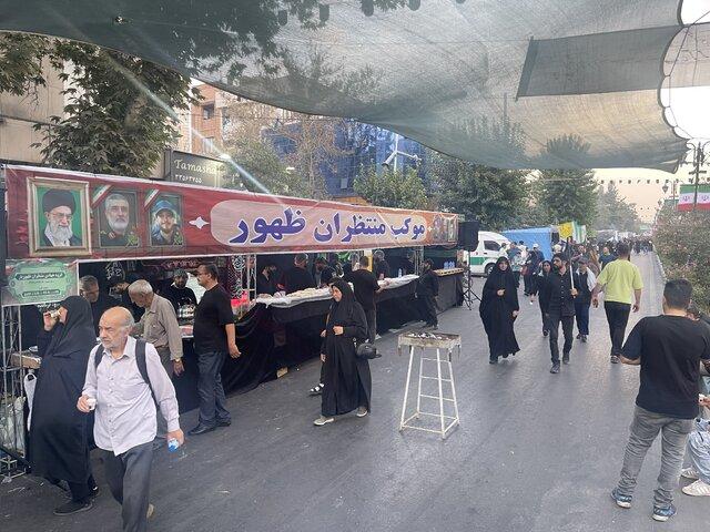 براساس این گزارش ۲۱۰۰ موکب در تهران و شهر ری مستقر شدهاند و خدمات مناسبی از جمله توزیع ۴۰۰ هزار بطری آب و ۲۰۰ هزار پرس غذای گرم برای زائران پیشبینی شده است.