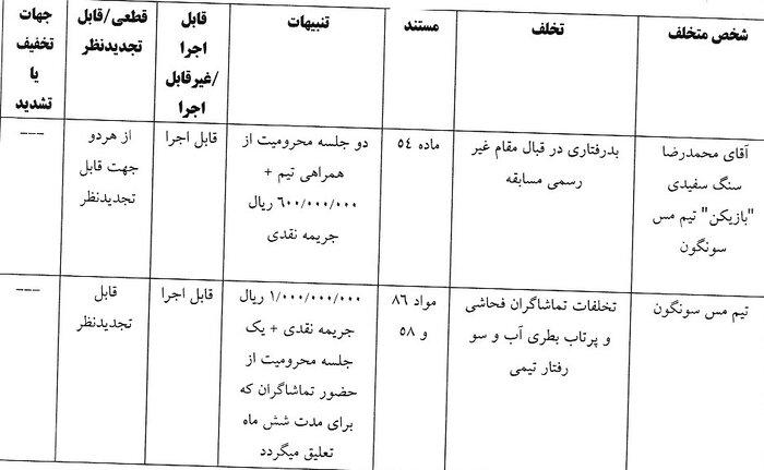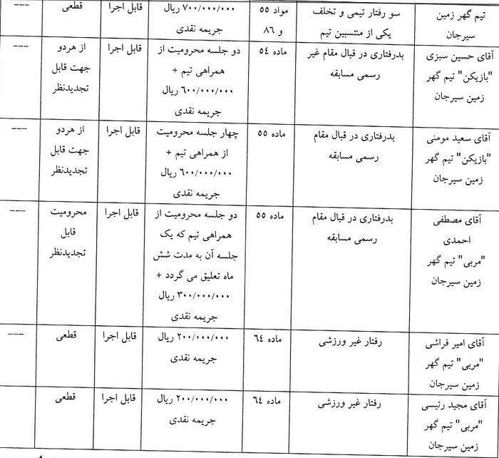 به گزارش ایرنا، رای تخلفات تیم مس سونگون و تیم گهر زمین به شرح زیر است: