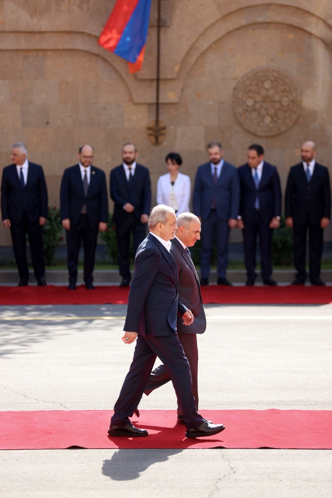 مراسم استقبال رسمی نخست وزیر ارمنستان از رئیس جمهور کشورمان، صبح امروز سهشنبه ۲۸ مرداد، در محل کاخ ریاست جمهوری این کشور برگزار شد.