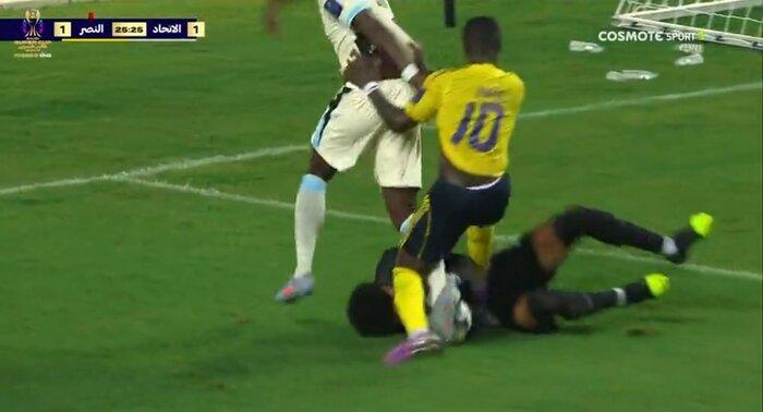 به گزارش ایرنا، در دقیقه ۶۱، رونالدو با فرار سریع خود از تله آفساید الاتحاد و در شرایطی که میتوانست دروازه حریف را باز کند، ژوائو فلیکس دیگر پرتغالی این تیم را در موقعیت گلزنی قرار داد تا ضربه بغل پای این بازیکن، دومین گل النصر را به ثبت برساند. این گل در ابتدا از سوی کمک داور بازی آفساید اعلام شد اما پس از بررسی تصاویر کمکداور ویدویی، داور وسط زمین را نشان داد تا بازی ۲ بر یک شود.