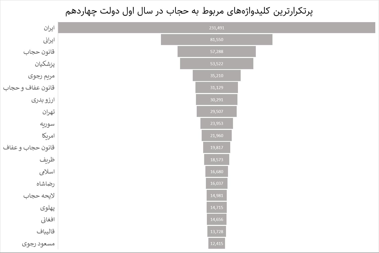بحث درباره حجاب همزمان با روی کار آمدن دولت چهاردهم و شخص مسعود پزشکیان از جمله موضوعات داغ و پرتکرار فضای مجازی به خصوص توئیتر فارسی بوده است. در این مدت بیش از هر چیز بحث و نقلها پیرامون حجاب به قانون حجاب و عفاف مربوط میشد که در قالب کلیدواژههایی چون لایحه حجاب، قانون عفاف و حجاب و قانون حجاب در این بستر پرتکرار شدند.