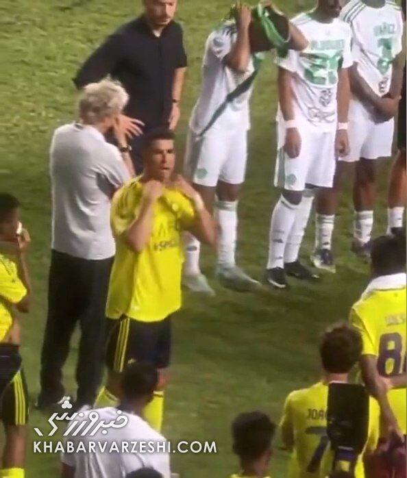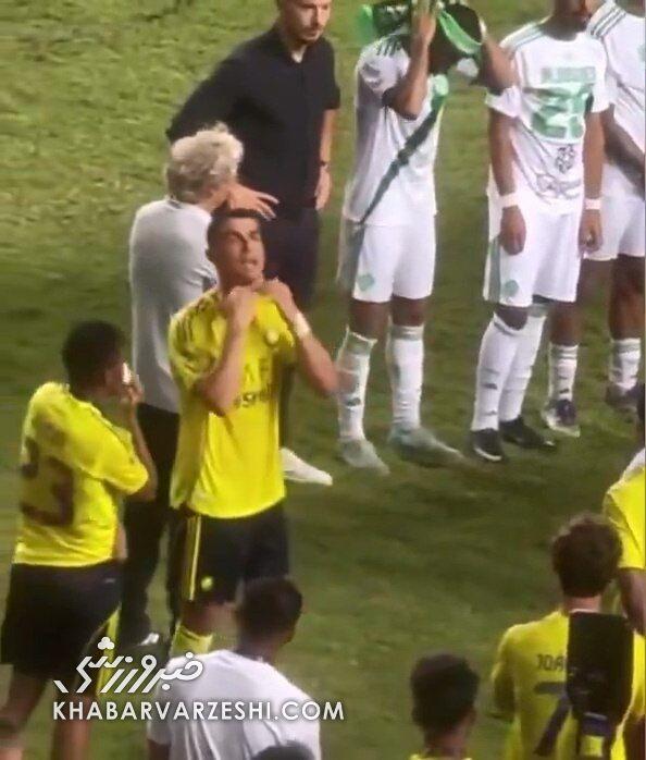 به گزارش خبر ورزشی، در مراسم اهدای جام، در حالی که بازیکنان الاهلی تونلی برای عبور بازیکنان النصر تشکیل داده بودند، ویدیویی از رونالدو منتشر شد که در فضای مجازی به سرعت وایرال شد. در این ویدئو، ستاره سابق رئال مادرید با روحیهای بالا، بازیکنان تیمش را تشویق کرده و خطاب به آنها گفت: «ناامید نباشید و سرتان را بالا بگیرید.» او با حرکتی نمادین، سرش را بالا آورد و تأکید کرد که تیم تا آخرین لحظه شانس قهرمانی داشت، اما این ذات فوتبال است که گاهی جام در دسترس، در یک آن از دست میرود.
