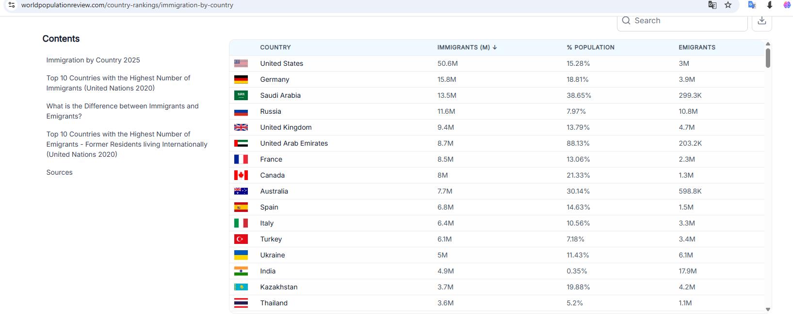 این آمار تنها به پناهندگان مربوط است و شامل مهاجران قانونی یا غیر قانونی نمیشود بر اساس داده های World Population Review کشورهایی مانند آمریکا آلمان و عربستان بیشترین جمعیت مهاجر قانونی را میزبانی می کنند.