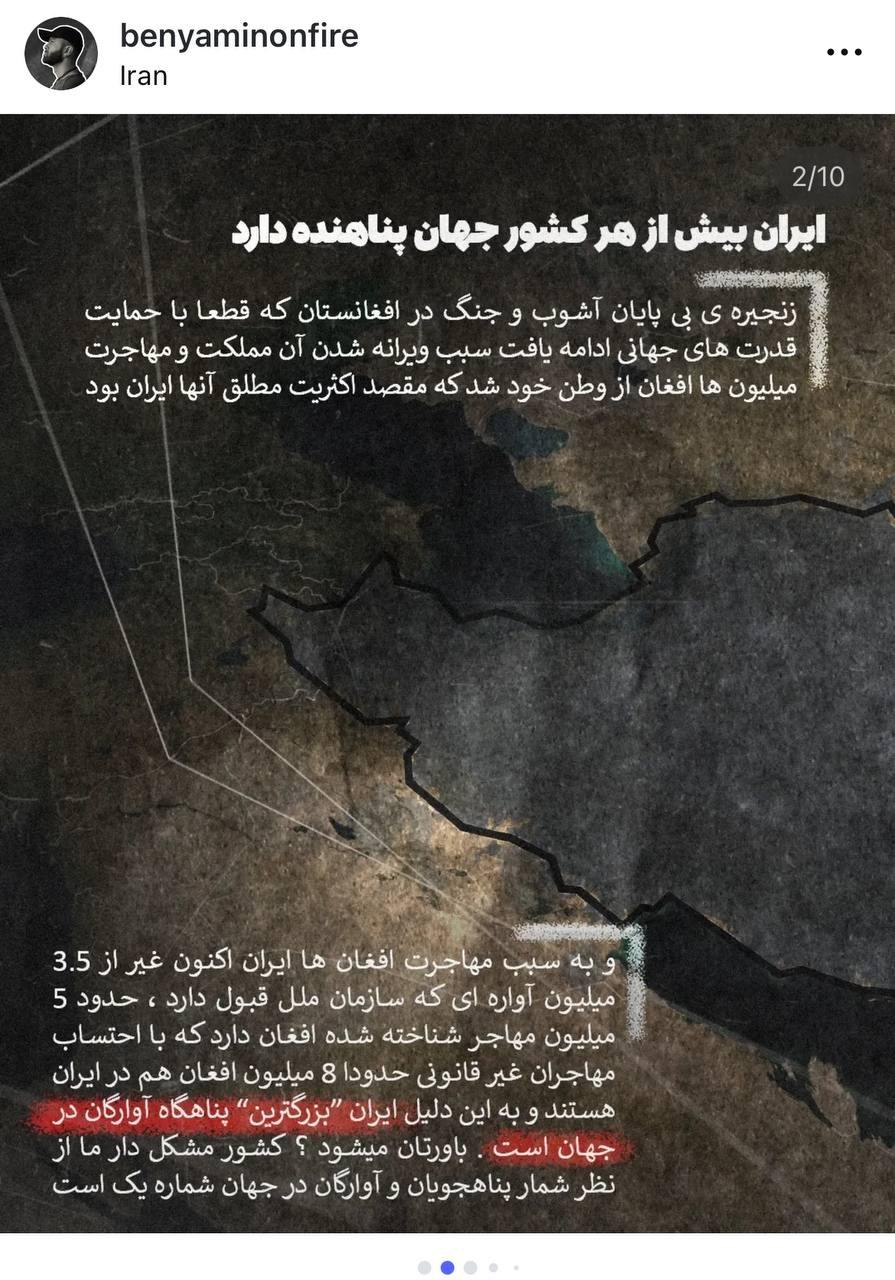 ایران آنلاین: کاربری در اینستاگرام مدعی شده است که به دلیل حضور گسترده آوارگان افغانستانی، ایران بیشترین تعداد پناهنده را در جهان دارد.