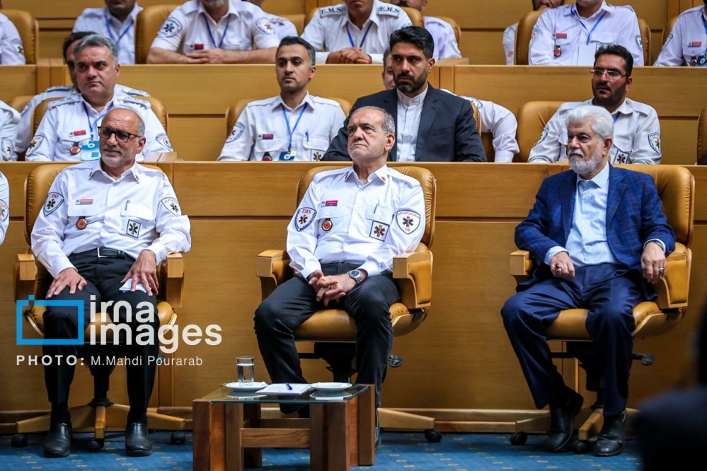 پنجاهمین سالگرد تأسیس اورژانس پیشبیمارستانی، ظهر سهشنبه (۲۵ شهریور ۱۴۰۴) با حضور«مسعود پزشکیان» رئیس جمهور، «محمدرضا ظفرقندی» وزیر بهداشت درمان و آموزش پزشکی، «فاطمه مهاجرانی» سخنگوی دولت، «جعفر میعادفر» رئیس سازمان اورژانس کشور و کارکنان اورژانس پیش بیمارستانی کشور در سالن اجلاس سران کشور برگزار شد.
