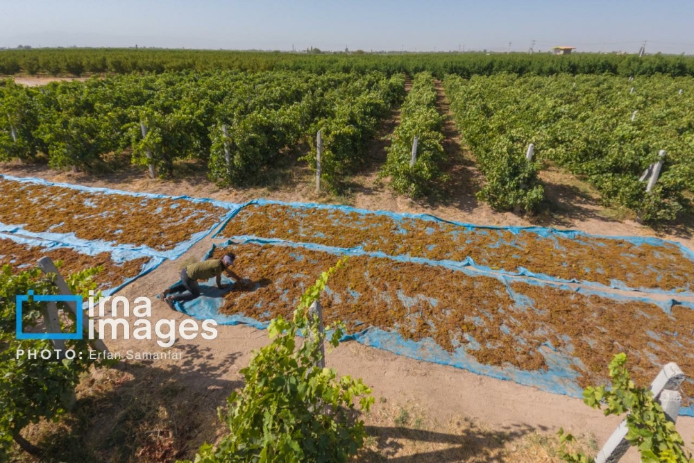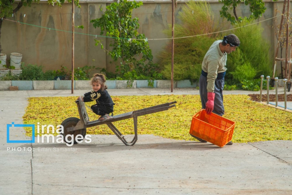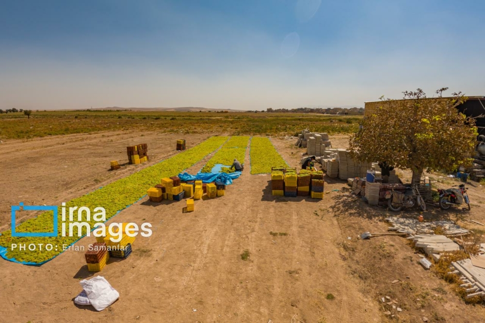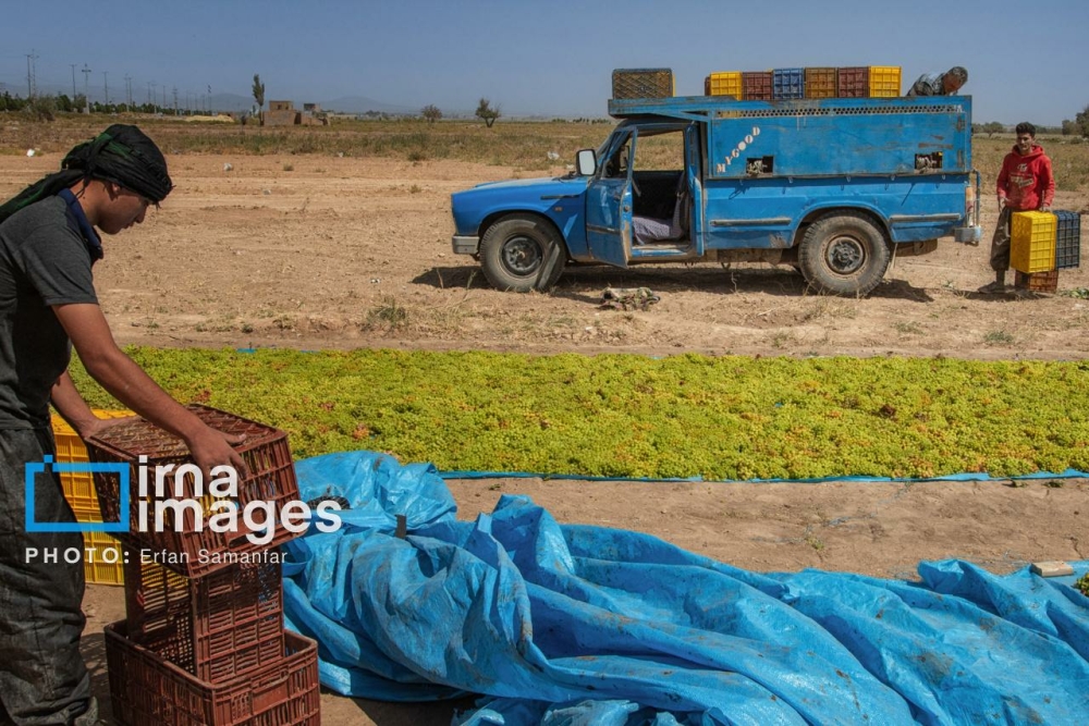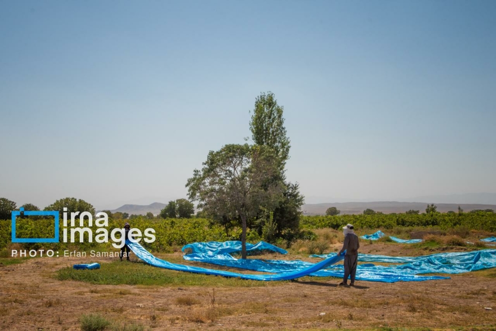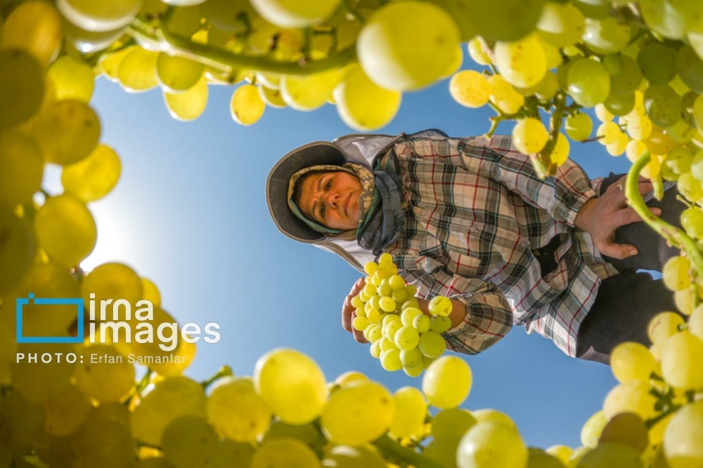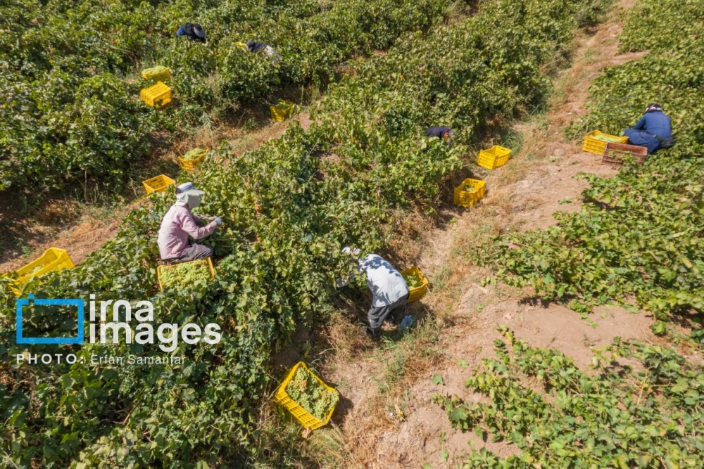 عملیات برداشت انگور از ۳۸ هزار و ۵۰۰ هکتار استان قزوین از نیمه اول شهریور آغاز و تا اواخر مهر ادامه خواهد داشت. بر اساس پیشبینی ها ۱۵۰ هزار تن محصول از این باغات برداشت می شود. ۷۰ درصد انگور تولید شده در استان به کشمش، ۲۵ درصد به تازه خوری و ۵ درصد نیز به فرآوردههای جانبی نظیر شیره، آبغوره و کنستانتره اختصاص مییابد. عکس:عرفان سامان فر