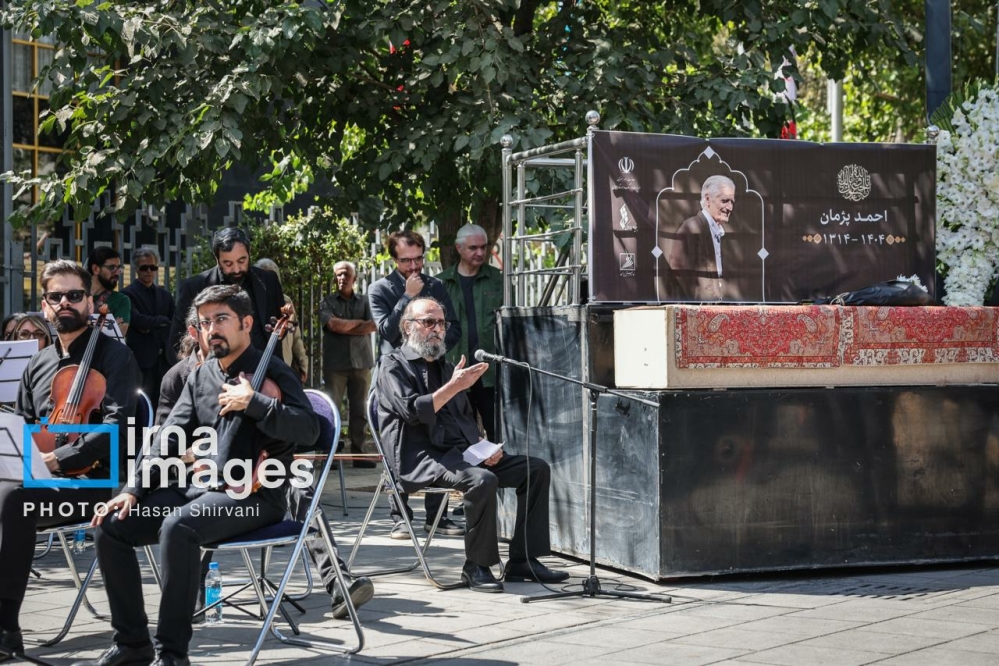مراسم بدرقه و تشییع پیکر «احمد پژمان» موسیقیدان و آهنگساز فقید، صبح جمعه (۴ مهر ۱۴۰۴) با حضور برخی مسولان و جمعی از هنرمندان در مقابل تالار وحدت برگزار شد. در این مراسم فاطمه مهاجرانی سخنگوی دولت، نیکنام حسینیپور مشاور وزیر و رییس رئیس مرکز روابط عمومی و اطلاعرسانهای وزارت فرهنگ و ارشاد اسلامی، بابک رضایی مدیرکل دفتر موسیقی وزارت فرهنگ و ارشاد اسلامی، اسحاق شکری مدیرعامل انجمن موسیقی ایران، محمدعلی مرآتی، علی مغازهای، مجید انتظامی، داود گنجهای، شریف لطفی، علیاکبر شکارچی، شروین مهاجر، هوشنگ، ارسلان، پشنگ و اردشیر کامکار، حسین علیشاپور، فاضل جمشیدی، محمدرضا درویشی، جمعی از هنرمندان و شاگردان این آهنگساز فقید با اجرای سیدعباس سجادی حضور داشتنند