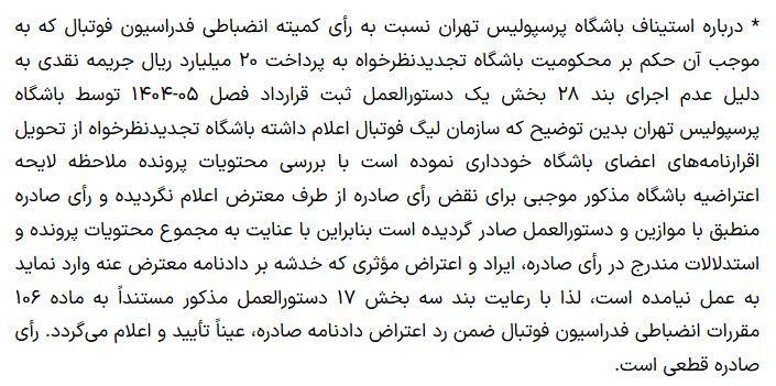 استیناف اعتراض پرسپولیس و استقلال را رد کرد