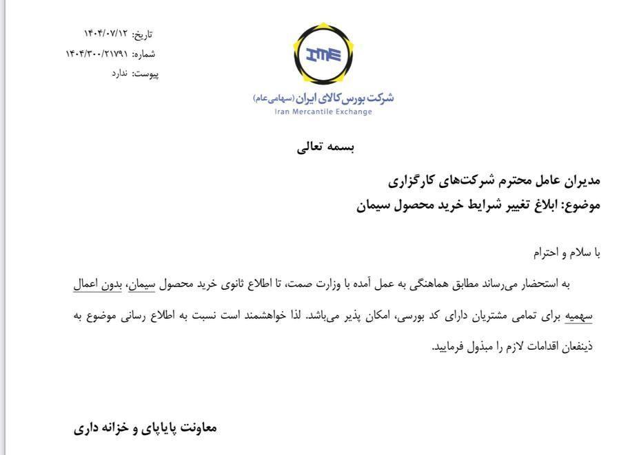 براساس اطلاعیه جدید بورس کالا و هماهنگیهای بهعملآمده با وزارت صمت، خرید سیمان برای تمام مشتریان دارای کد بورسی تا اطلاع ثانوی بدون اعمال سهمیه انجام میشود. این تغییر شرایط با هدف روانسازی معاملات و تسهیل دسترسی مشتریان به محصول سیمان صورت گرفته است.