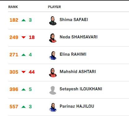 به گزارش ایسنا، در رنکینگ جوانان نیز بنیامین فرجی و مبین امیری افت جایگاه داشتند. فراز شکیبا پنج و عرشیا لرستانی ۳۰ پله صعود کردند.