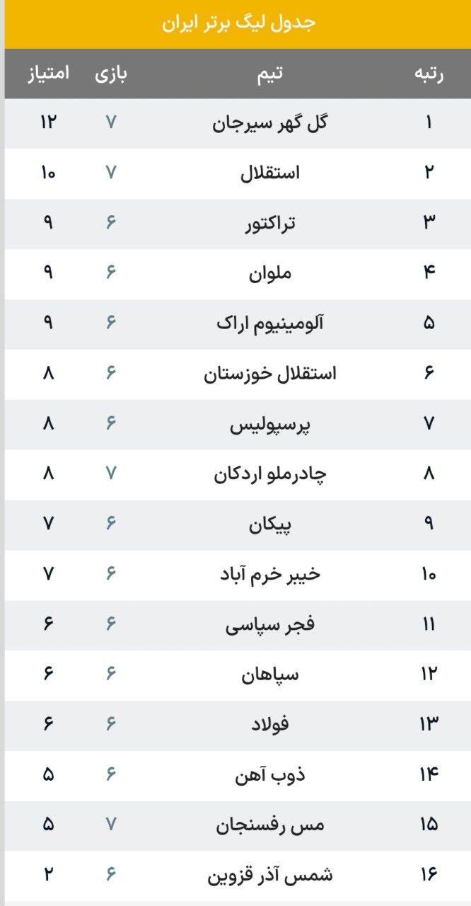 جدول لیگ برتر پس از بازیهای امروز / استقلال در یک قدمی صدرنشینی!