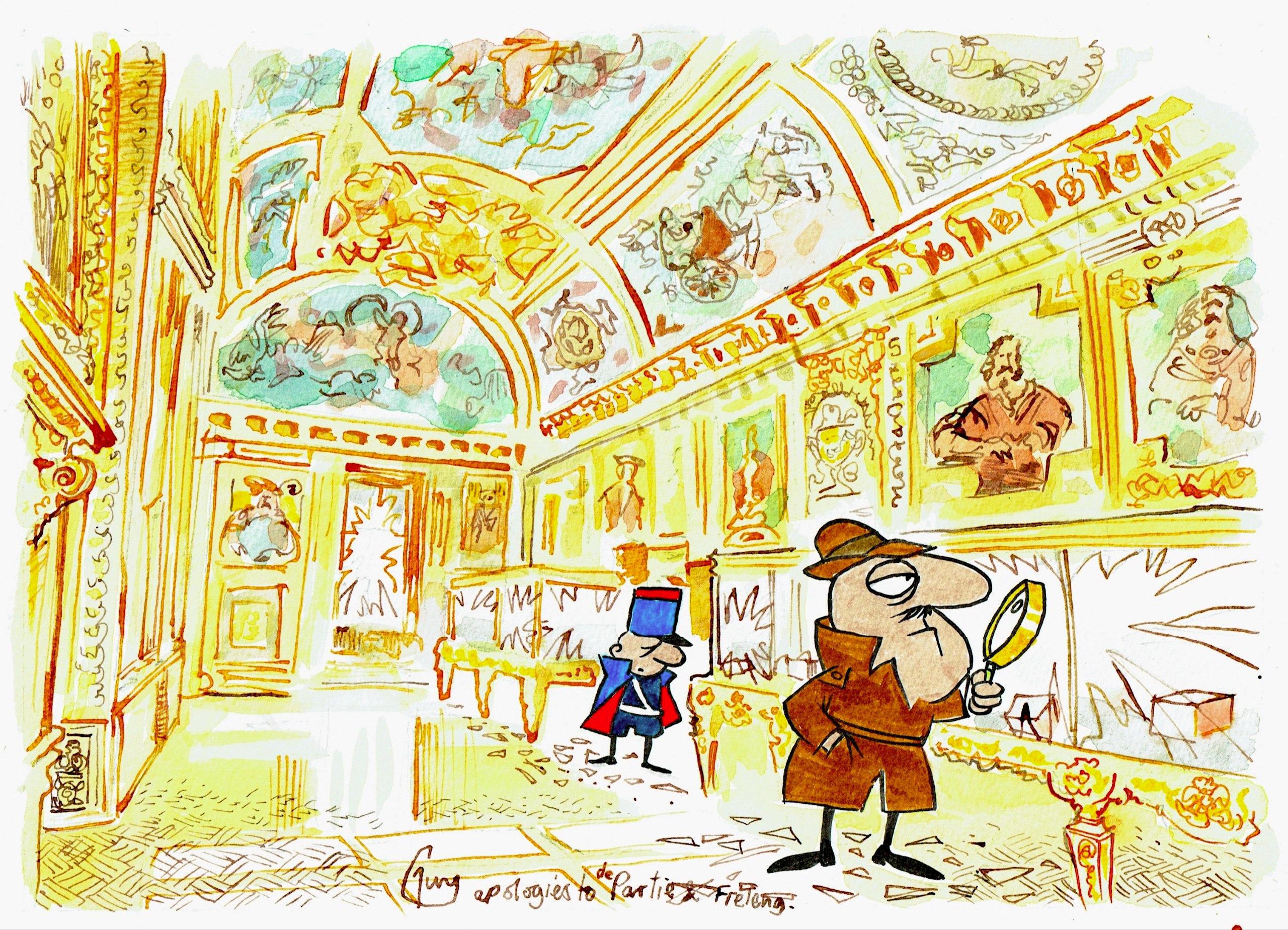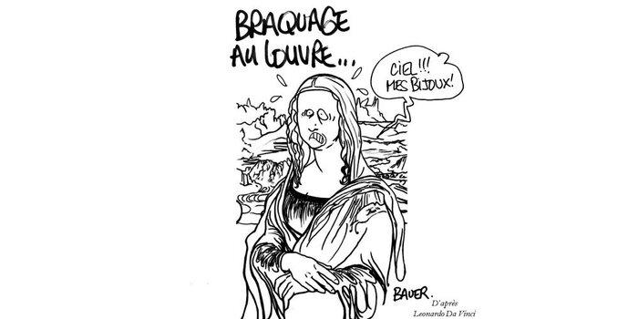 نشریه «لا پروگرس» نیز با توجه به اینکه سرقت قبلی از لوور مربوط به تابلوی مونالیزا بوده است، تصویری از این تابلو در حالت وحشت را سوژه کاریکاتور کرد و از زبان او نوشت: خدایا!!! جواهراتم!