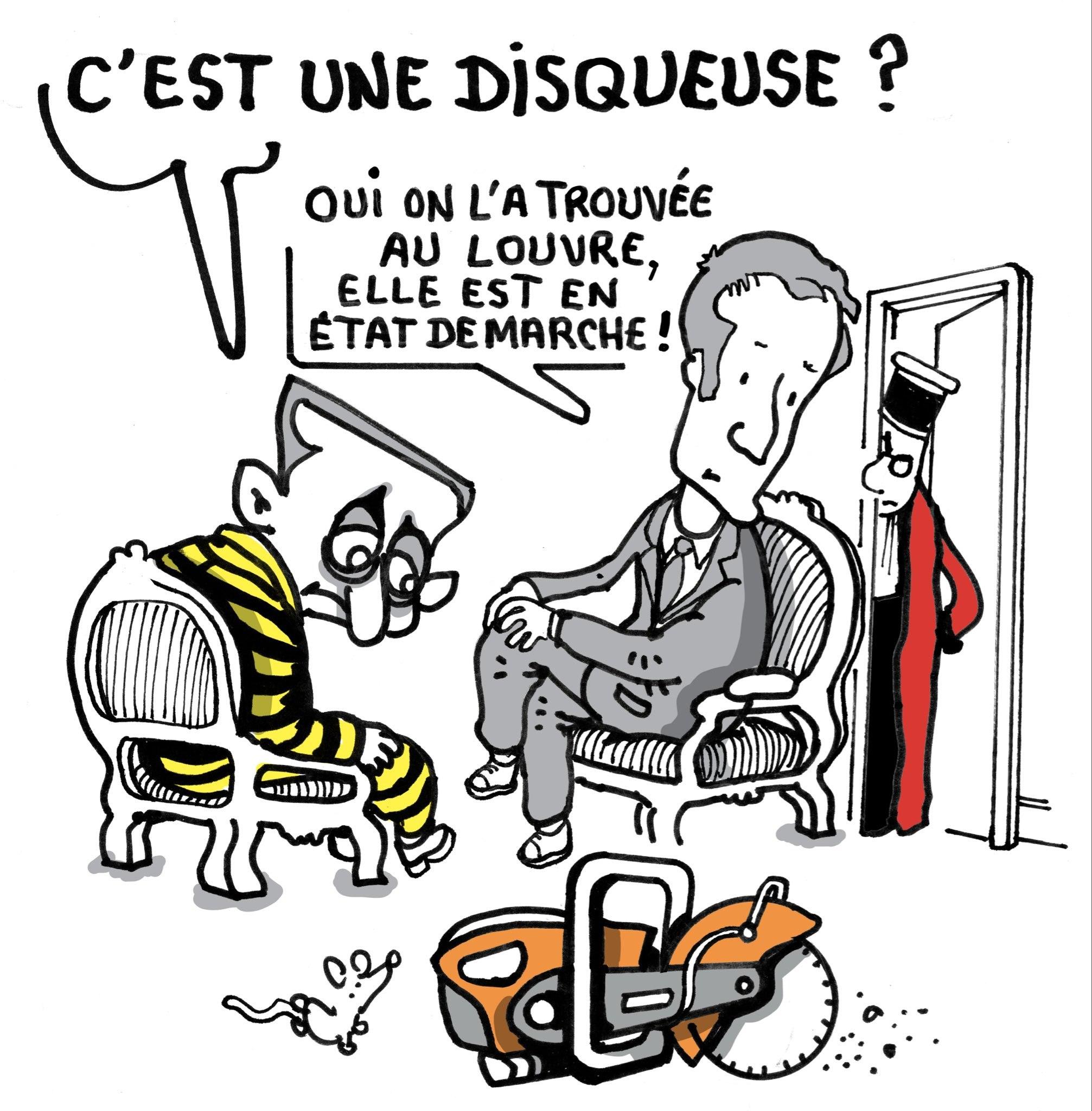 این سرقت که بحث و جدلهایی را در طبقه سیاسی و فرهنگی فرانسه به راه انداخت، در بسیاری از رسانههای فرانسوی با زبان انتقاد طنزگونه کاریکاتور بازتاب داشت.