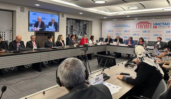 به گزارش ایرنا، نشست «اقدامات قهری یکجانبه: موانع تجارت و توسعه پایدار» در حاشیه شانزدهمین کنفرانس تجارت و توسعه سازمان ملل متحد (آنکتاد ۱۶) با حضور وزرا، سفرا و نمایندگان دائم کشورهای در حال توسعه از جمله جمهوری اسلامی ایران، چین، ونزوئلا، کوبا، بلاروس و دبیر اجرایی مرکز جنوب برگزار شد.