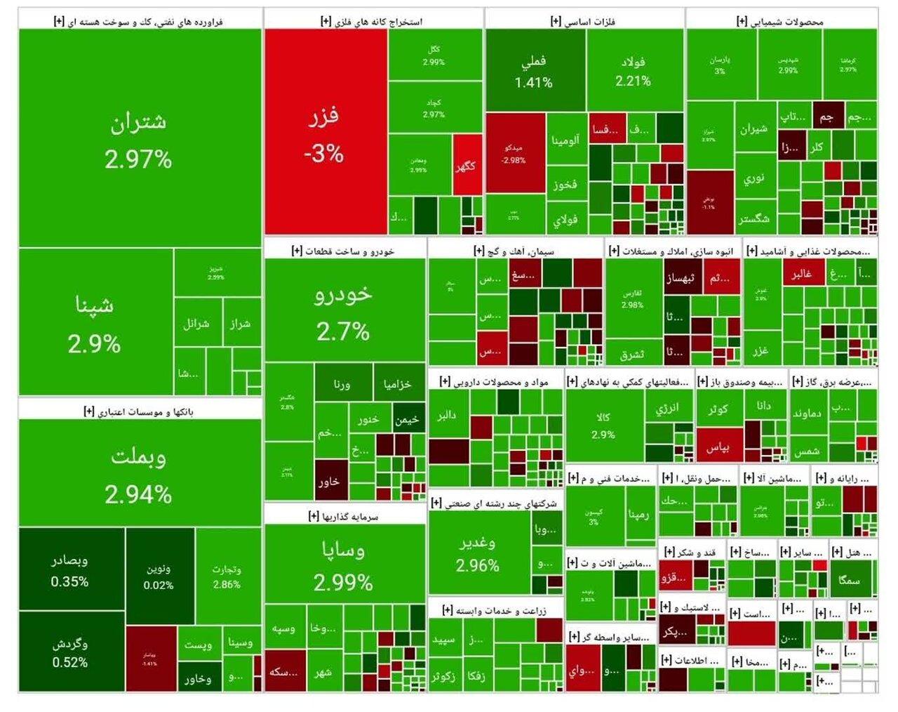 نمادهای «پارسان»، «وبملت» و «وغدیر» بیشترین تأثیر مثبت را بر شاخص کل گذاشتند.