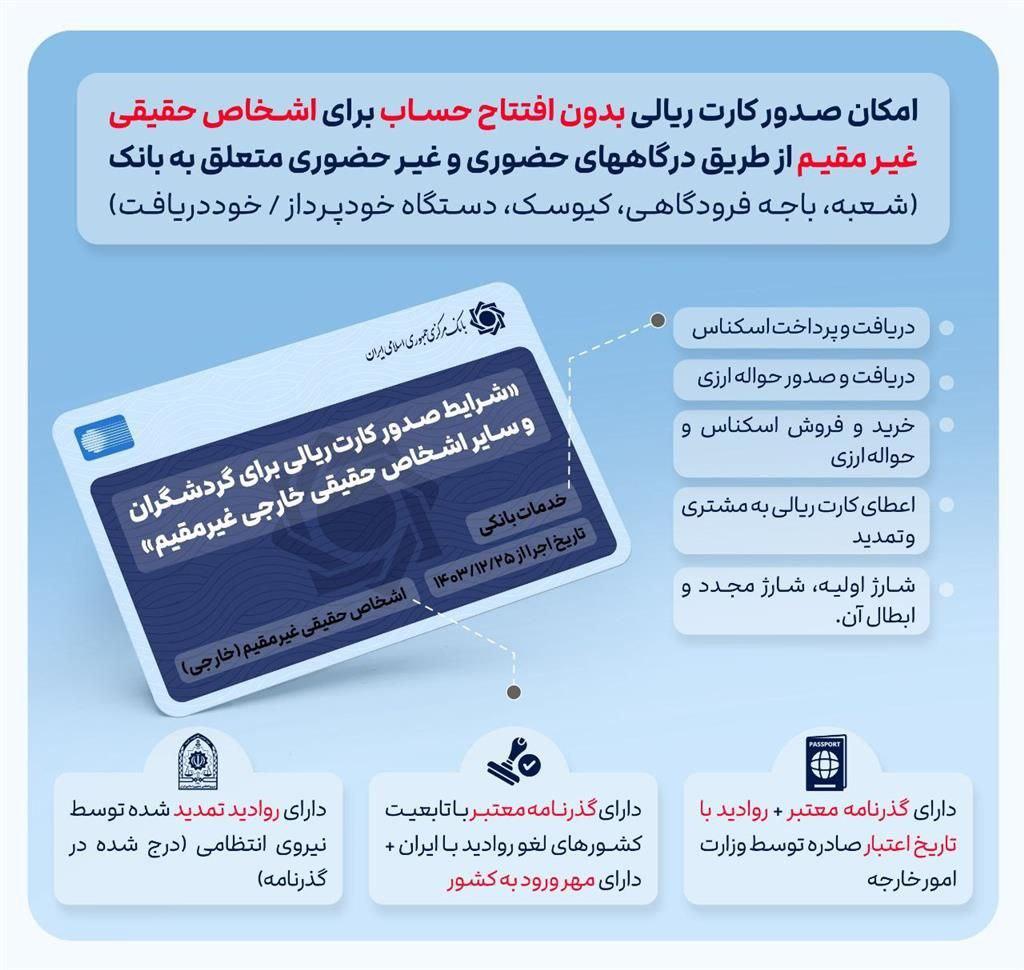 اینفوگرافیک/ آغاز اجرای آزمایشی خرید ارز از گردشگران خارجی در فرودگاههای بینالمللی کشور و صدور توریستکارت (ریالی) برای آنان