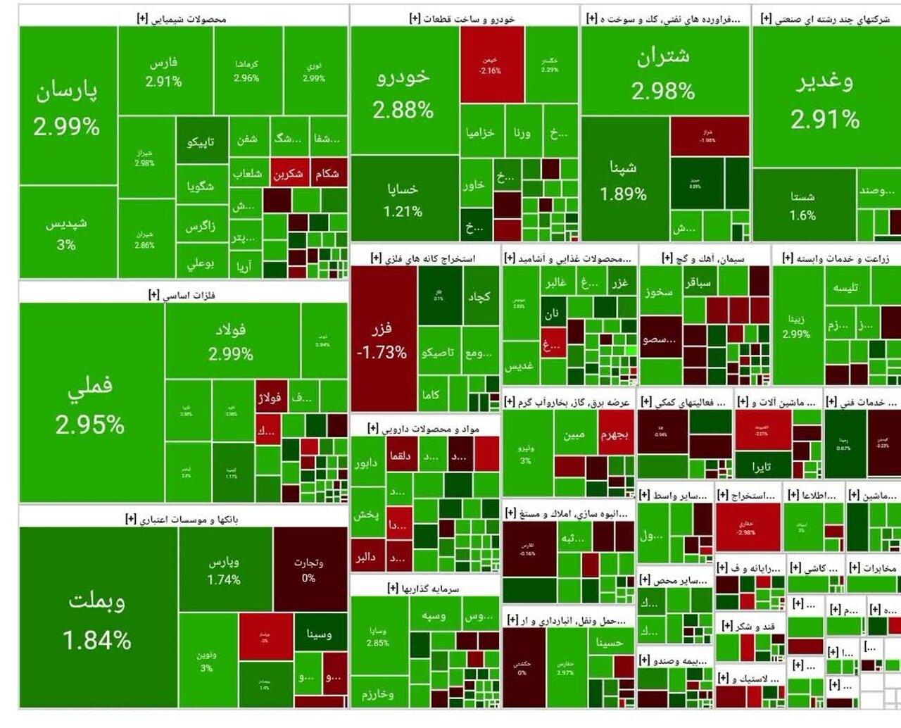 نمادهای «فارس»، «فملی» و «فولاد» بیشترین تأثیر مثبت را بر شاخص کل گذاشتند.