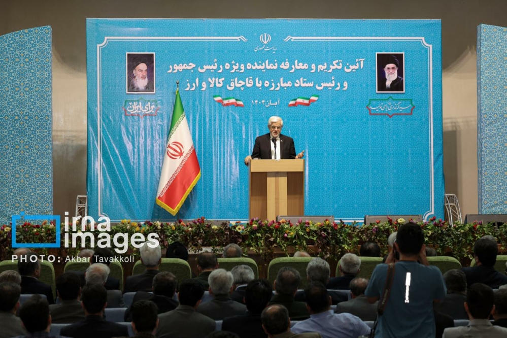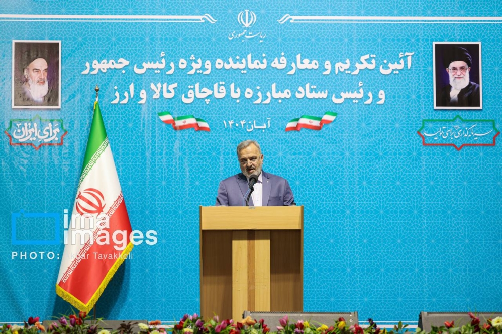 مراسم تکریم «علیرضا رشیدیان» نماینده ویژه و رئیس اسبق و معارفه «حبیبالله حقیقی»، نماینده ویژه و رئیس جدید ستاد مرکزی مبارزه با قاچاق کالا و ارز، ظهر سهشنبه (۶ آبان ۱۴۰۴) با حضور «محمدرضا عارف» معاون اول رئیس جمهور و «سیدرضا صالحی امیری»، وزیر میراث فرهنگی، گردشگری و صنایع دستی، در سالن اجتماعات سازمان حج و زیارت اسلامی برگزار شد.