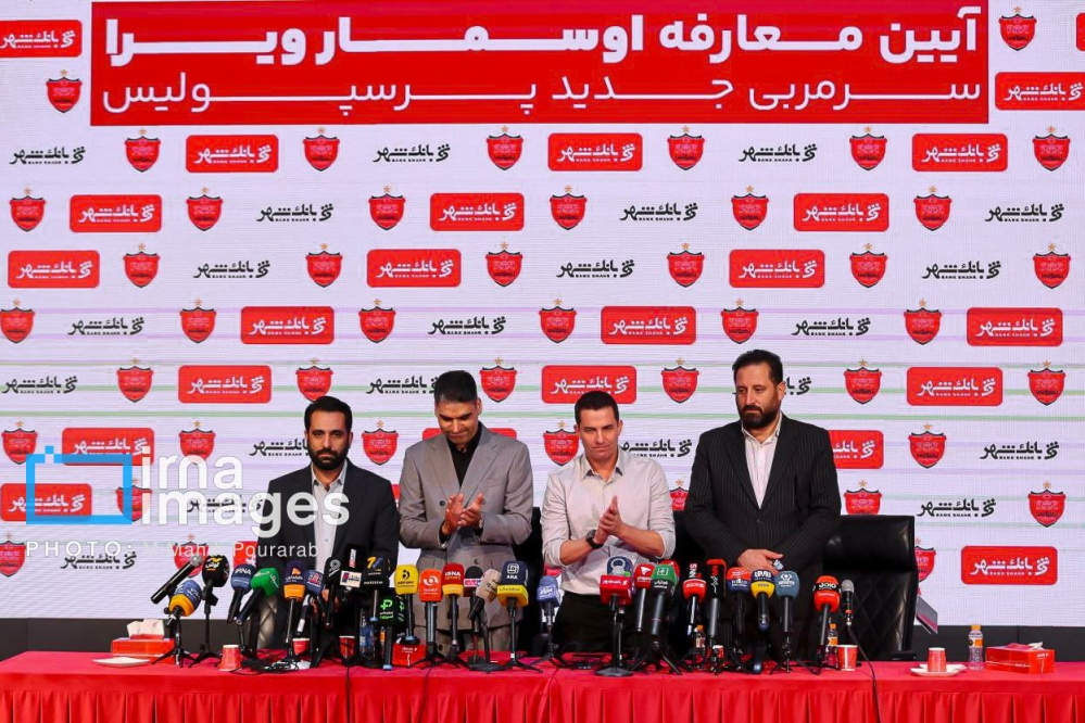 مراسم امضای قرارداد رسمی «اوسمار لوس ویرا» سرمربی جدید تیم فوتبال «پرسپولیس تهران»، صبح چهارشنبه (۷ آبان ۱۴۰۴) با حضور «پیمان حدادی» سرپرست باشگاه پرسپولیس، در سالن اجتماعات ساختمان مرکزی بانک شهر برگزار شد.