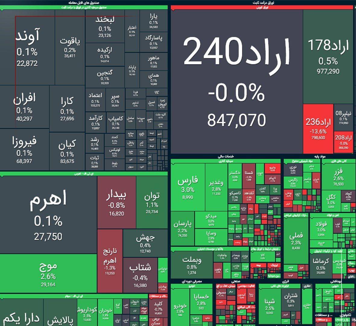 در پایان معاملات بیش از ۵۹ درصد نماد‌ها (۴۷۱ نماد) در محدوده مثبت قرار گرفتند.