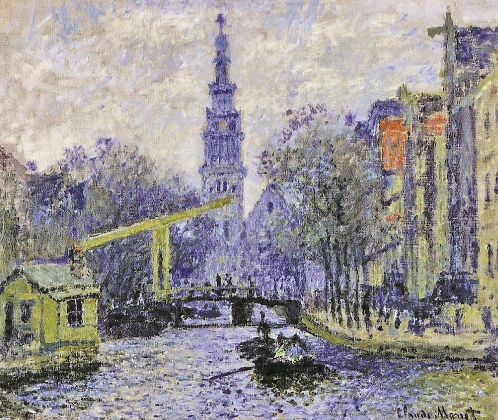 در میان دهها منظره فرانسوی، مونه در سفرش به هلند در سال ۱۸۷۴ چند نقاشی از شهر آمستردام کشید؛ از جمله، دو نسخه از یک چشمانداز واحد: «کلیسای جنوبی در آمستردام» و «آبراهه در آمستردام» که بهترین نمونه برای درک منظر پدیدارشناسانه آثار اوست. این آثار، هرچند در حاشیه کارنامه او قرار گرفتهاند، اما از حیث زیباییشناسی و نشانهشناسی یکی از کلیدهای فهم نگاه مونهاند. آثار مونه در آمستردام پلی هستند میان دو مرحله شخصی از هنر او: از منظرههای دقیق اولین تا آبنگاریهای انتزاعی ژیورنی. در اینجا، فرم هنوز از میان نرفته، اما در آستانه محو شدن است. درخشش نور در مه هلندی، پیشدرآمدی است بر غوطهوری کامل رنگ در سالهای پایانی زندگیاش.