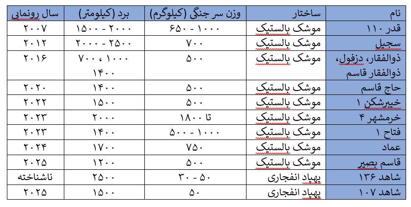 این مقاله در انتها به صورت خلاصه اطلاعات موشکها و پهپادهای معرفی شده را در یک جدول به صورت خلاصه ارائه داده است.