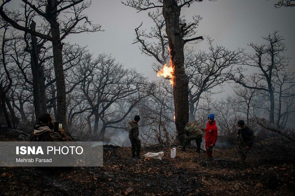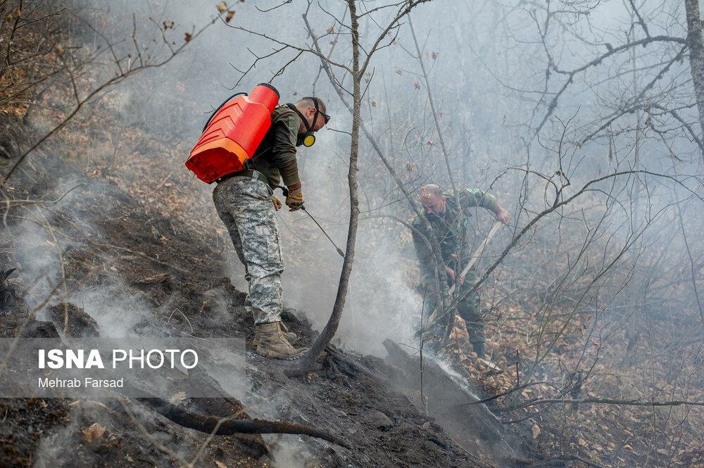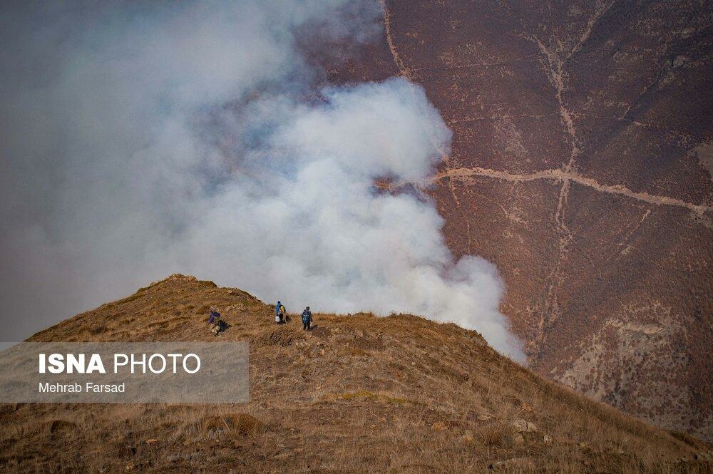 گزارش تصویری/ عملیات مهار آتشسوزی مناطق کوهستانی روستاهای دلیر و الیت