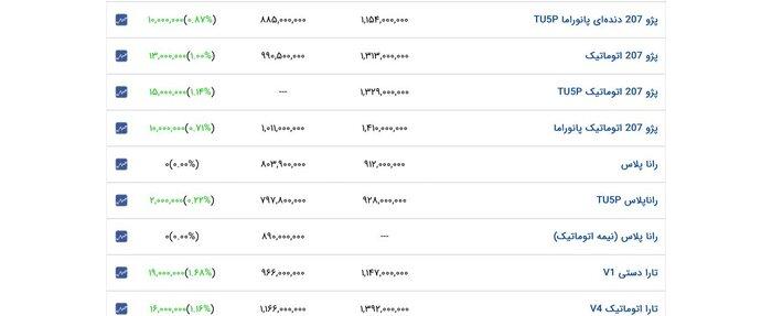 پژو ۲۰۷ دندهای پانوراما (رینگ فولادی)، پژو ۲۰۷ دندهای TU۵P پانوراما (رینگ فولادی) و پژو ۲۰۷ اتوماتیک، پژو ۲۰۷ اتوماتیک TU5P و پژو ۲۰۷ اتوماتیک پاناروما افزایش بین ۶ تا ۱۵ میلیون تومانی را ثبت کردند.