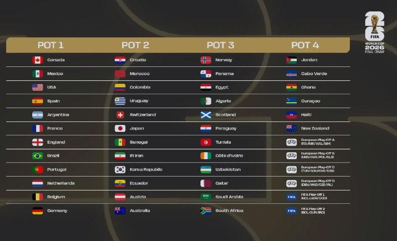 قرعهکشی رقابتهای جامجهانی ۲۰۲۶ به زودی برگزار میشود و فیفا سیدهای چهارگانه را مشخص کرد.